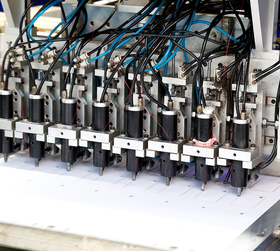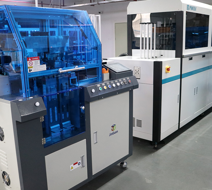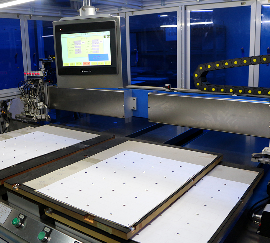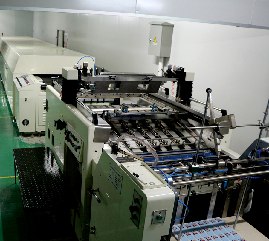 ※全自动丝印机可以确保印刷的高精确度,也可加工带UV效果的图案及文字。速度每小时2000多大张/折合成品卡约6万小张;印完即干的烘道保证灰尘不易“侵入”。